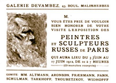 Novembre - décembre 1912 : Expositions Le Monde de l’Art (Мир искусства), école de peinture, sculpture et architecture.